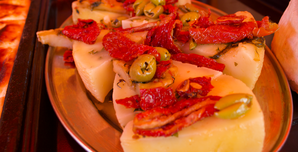 My stomach growled. We walked through the Mercato Ballaro, which reminded me of the souks in Morocco. Bustling. Chaotic. Colorful. He said the name of the game here was screaming louder than the guy next to you to advertise your daily goods. It was bursting with life and noises and smells and mist as merchants hosed down their produce. Everything was tinted red from the bright umbrellas overhead, shading the artichokes, strawberries, cheese, and olives. There were fisherman with odd sea creatures I'd never seen and jolly old men handing me free strawberries with whipped cream. And seemingly endless, exquisite blood oranges. An assault to the senses is what it was. And it was positively thrilling. I meandered around that market at least once a day for the remainder of my time in Palermo.